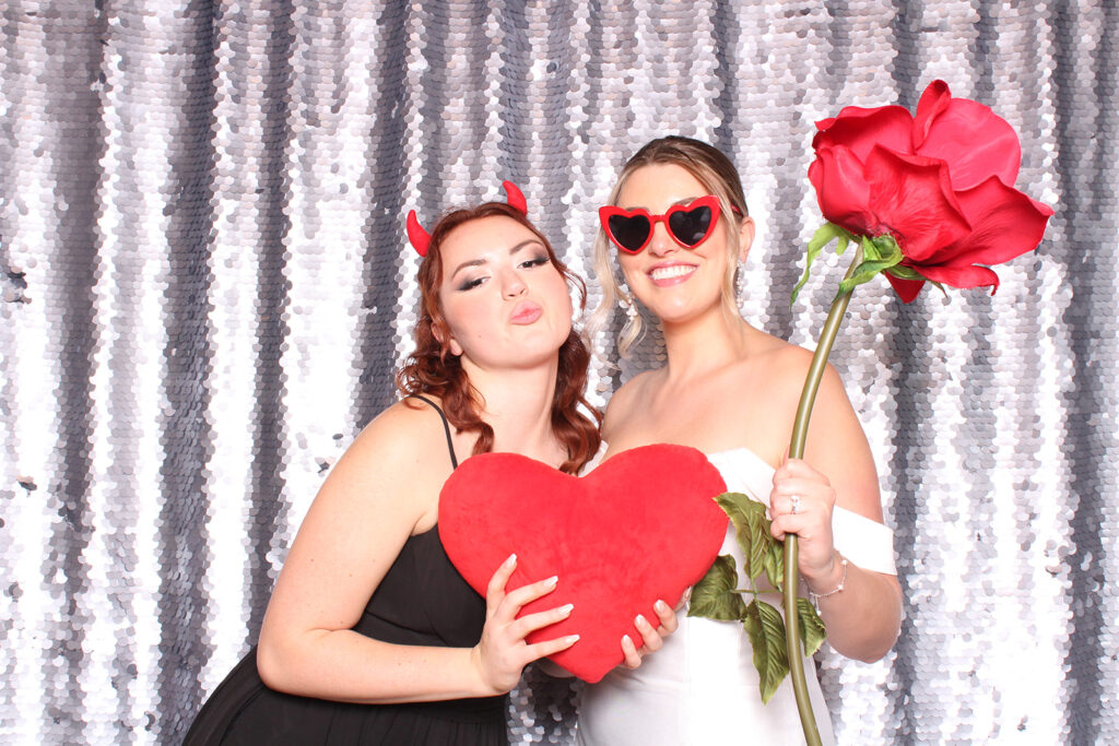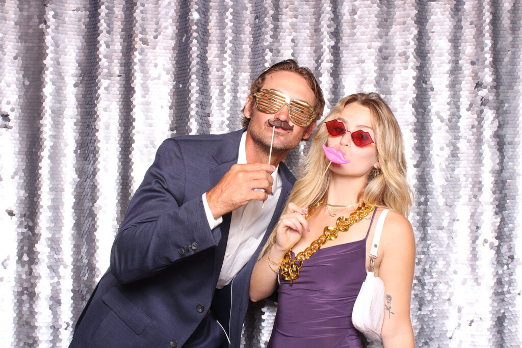 Balancing the dreamy backdrop, they chose our The Classic props set. This timeless collection allowed guests to infuse their photos with personality while maintaining the event’s elegant atmosphere. From chic fedoras to glittering masquerade masks, the props offered just the right mix of urban cool and timeless charm.